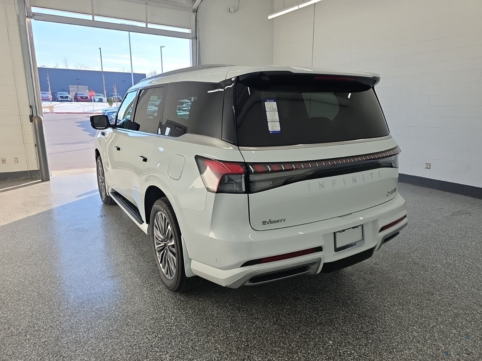LUXE 4WD, 22' WHEEL PKG, ELECTRONIC AIR SUSPENSION, PANO SUNROOF, HEADS UP DISPLAY, HEATED VENTED 1ST AND 2ND ROW LEATHER SEATS, 3D AROUND VIEW MONITOR, APPLE CARPLAY., 14 Speakers, 3rd row seats: bench, 4-Wheel Disc Brakes, ABS brakes, Adaptive suspension, Air Conditioning, AM/FM radio: SiriusXM with 360L, Anti-whiplash front head restraints, Apple CarPlay/Android Auto, Audio memory, Auto High-beam Headlights, Auto tilt-away steering wheel, Auto-dimming Rear-View mirror, Auto-leveling suspension, Automatic temperature control, Brake assist, Bumpers: body-color, Cargo Blocks/Stabilizers, Cargo Net, Cargo Package, Carpeted Cargo Area Protector, Compass, Console Net, Delay-off headlights, Driver door bin, Driver vanity mirror, Dual front impact airbags, Dual front side impact airbags, Electronic Stability Control, Emergency communication system: INFINITI InTouch, Four wheel independent suspension, Front anti-roll bar, Front Bucket Seats, Front Center Armrest, Front dual zone A/C, Front reading lights, Fully automatic headlights, Garage door transmitter: myQ Connected Garage, Heads-Up Display, Heated and Climate Controlled Front Bucket Seats, Heated door mirrors, Heated front seats, Heated rear seats, Heated steering wheel, HVAC memory, Illuminated entry, INFINITI Radiant Illuminated Silver Kick Plates, Knee airbag, Leather Seating Surfaces, Leather steering wheel, Low tire pressure warning, Memory seat, Navigation system: Google Built-in, Occupant sensing airbag, Outside temperature display, Overhead airbag, Overhead console, Panic alarm, Passenger door bin, Passenger vanity mirror, Power door mirrors, Power driver seat, Power Liftgate, Power moonroof, Power passenger seat, Power steering, Power windows, Radio data system, Radio: Klipsch Premium Audio System, Rain sensing wipers, Rear air conditioning, Rear anti-roll bar, Rear reading lights, Rear seat center armrest, Rear window defroster, Rear window wiper, Reclining 3rd row seat, Remote keyless entry, Security system, Soft-Sided Cargo Cooler, Speed control, Speed-sensing steering, Splash Guards, Split folding rear seat, Spoiler, Steering wheel memory, Steering wheel mounted audio controls, Super Premium Paint, Tachometer, Telescoping steering wheel, Tilt steering wheel, Traction control, Trip computer, Turn signal indicator mirrors, Variably intermittent wipers, Ventilated front seats, Ventilated rear seats, Wheels: 22 x 8.5J Cast Aluminum Alloy.